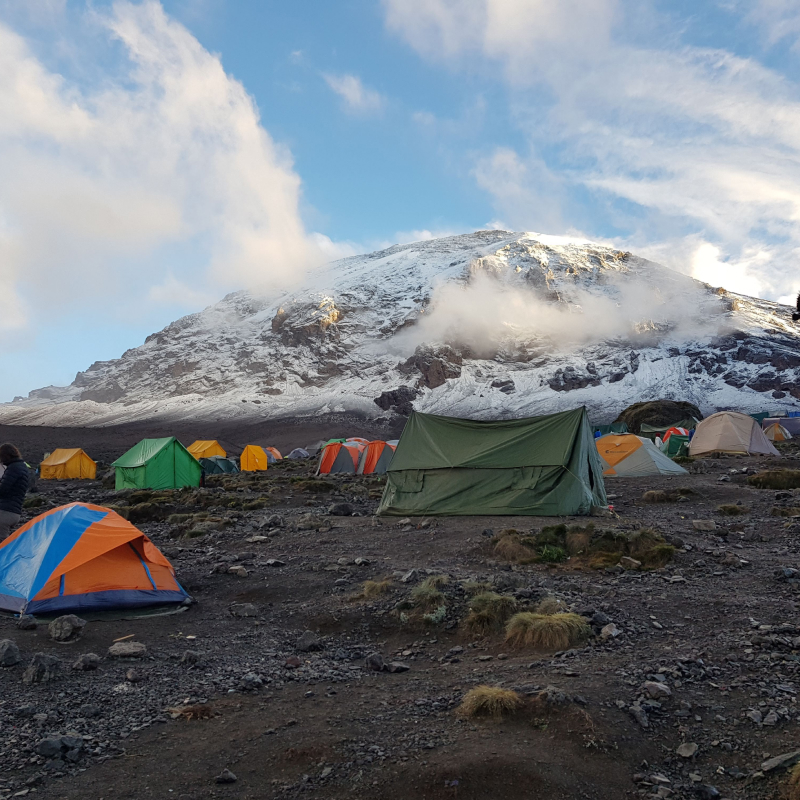 Our packages typically include airport transfers, hotel accommodation before and after the climb, park fees, meals during the trek, tents, guides, porters, and emergency evacuation support.